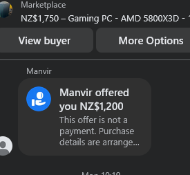 I sell a bit of stuff via TradeMe and Facebook Marketplace to make a few dollars here and there. But some people think that because I’m selling something, that I’ll accept anything for it….